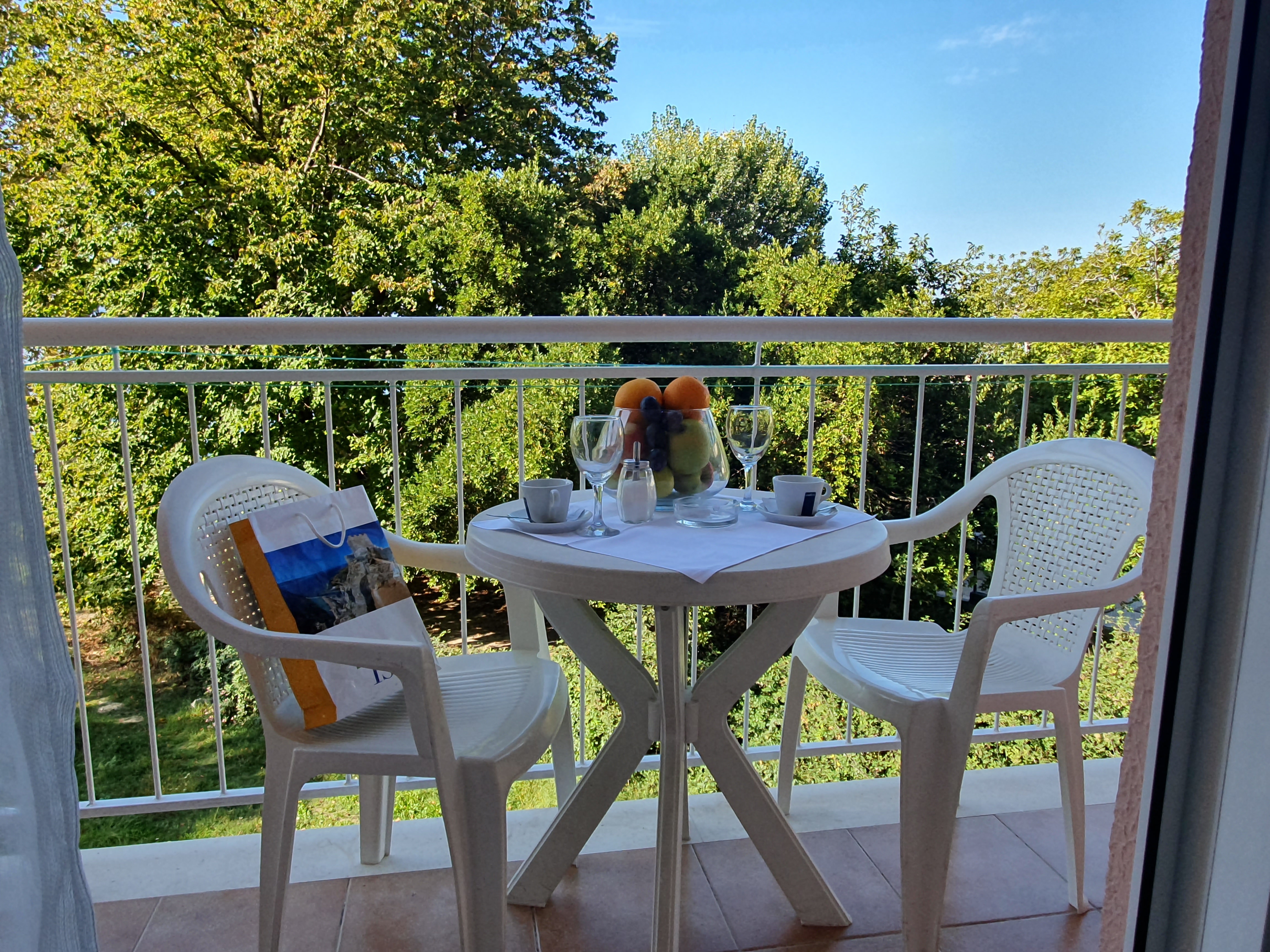 Sve sobe su klimatizirane i imaju TWC, TV SAT, Wi-Fi, mini hladnjak, sušilo za kosu, telefon, balkon, sve su južne orijentacije sa pogledom prema moru, u nekim sobama je zbog stabala pogled na more djelomično zaklonjen.